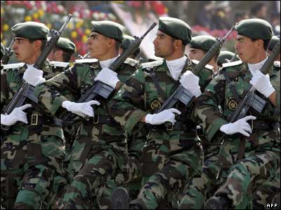 رژه سربازان ايرانی در مراسم روز ارتش که با حضور محمود احمدی نژاد رئيس جمهور ايران در تهران برگزار شد.