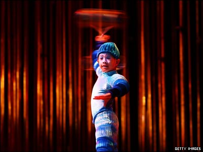 يکی از اعضای "سیرک دو سوی" در جریان نمايشی که در ملبورن اجرا کردند.