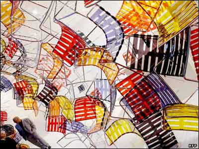 نمايی از صندلی مختلف در چهل و ششمين نمايشگاه بين المللی مبلمان که در گالری پری در ميلان برگزار شده است.