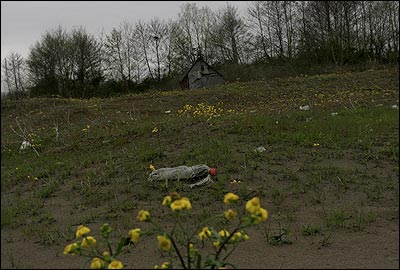 زبالهای مهجور در زمینی که هنوز عشق رستن دارد. بسیاری از این آشغالها ضمن حمل با وانت در مسیرهای ساحلی به زمین میریزند