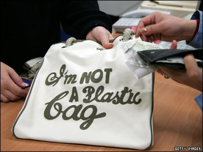 مشریان زیادی برای خريد کيفهای طرح آنا هيندمارچ، طراح بريتانيايی که بر روی آن نوشته شده "من يک کيسه پلاستیکی نیستم" از ساعات اوليه صبح چهارشنبه در مقابل فروشگاه های سينزبری در بريتانيا صف بستند. اين کيف که قيمت آن پنج پوند است، در دستان ستارگان مشهور دنيای هنر و سرگرمی همچون کيرا نايتلی، ليلی کول، اسکارلت جوهانسون و جسيکا آلبا ديده شده بود.