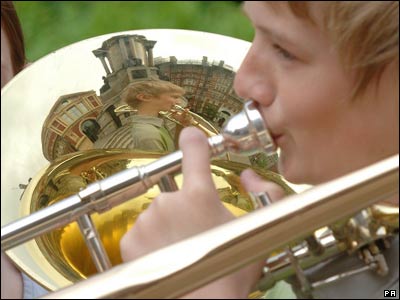 راس لمبرت، نوازنده ای سيزده ساله در مراسم افتتاحيه رشته کنسرتهای سالانه ای که با عنوان "بی بی سی پرامز" در "رويال آلبرت هال" لندن برگزار می شود.