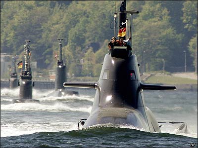 چند زیردریایی متعلق به نیروی دریایی آلمان در دریای بالتیک مانور می دهند.