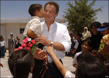 از نظر خیلی ها، جنگ عراق اقدامی سرنوشت ساز در دوران نخست وزیری بلر بود. عباس عدنان، پسربچه دانش آموز، در جریان دیدار سال 2003 آقای بلر از عراق، او را می بوسد.