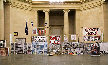 اثر مارک والینگر بازسازی مو به موی تجمع کوچک ضدجنگ برایان هاو در مقابل پارلمان بریتانیا است.