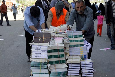 حمل کتاب ها به دلیل وجود پله ها و طولانی بودن مسیرها در مصلای تهران به سختی انجام می شد.