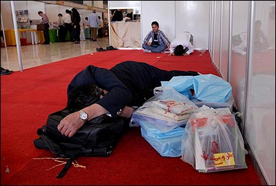 خیلی از بازدیدکنندگان به دلیل خستگی ناشی از نبود اطلاعات دقیق از محل غرفه ها و نبودن جای مناسبی برای استراحت، بعد از چند ساعت گشتن، در کنار غرفه ها به خواب می رفتند.
