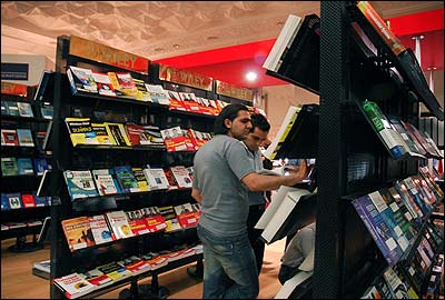 انتخاب کتاب در يکی از غرفه های عرضه کتابهای خارجی.