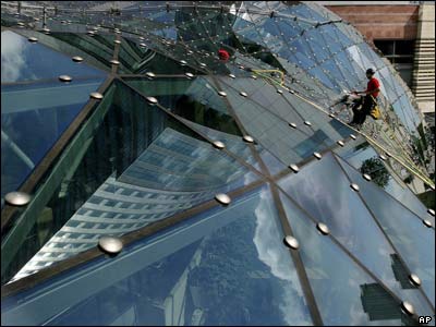 صخره نوردی لهستانی از راه تمیز کردن سقف شیشه ای مرکز خرید گلدن تراس در ورشو در آمد کسب می کند.