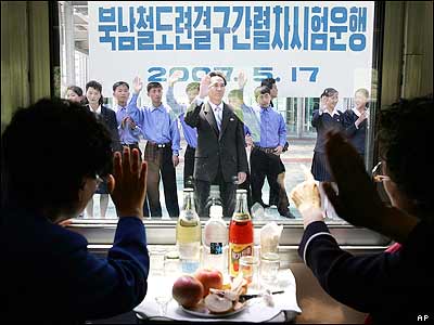 در اقدامی نمادين دو قطار يکی از کره شمال و ديگری از کره جنوبی از مرز اين دو کشور گذشت و به خاک دیگری وارد شدند. اين نخستين بار در نيم قرن گذشته است که قطاری از مرز ميان دو کشور می گذرد.