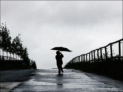 پسری در هوايی بارانی در فرانکفورت، آلمان می دود. دمای هوا در آلمان به حدود 7 درجه سانتيگراد کاهش یافته است. |