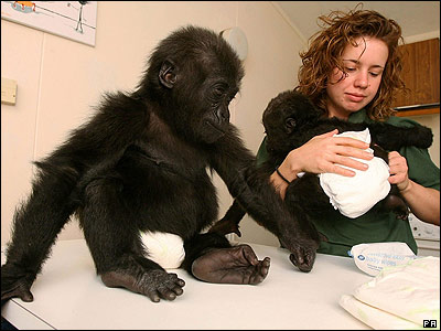 دانا هانی پس از اينکه مادر این دو نوزاد گوريل نتواست آنها را نگه دارد، آنها را در خانه اش بزرگ می کند. قرار است اواخر سال جاری این گوریلها در جنگلی در گابن رها شوند.