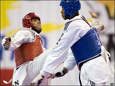 مرتضی رستمی (چپ) تکواندو کار ایرانی، در رقابتهای جهانی تکواندو در چین به مدال نقره رسید.