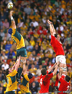 بازیکن تیم راگبی استرالیا در دومین تست، بلندتر از همتای ولزی خود پریده است