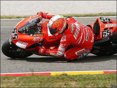 لوریس کاپیروسی، موتورسوار ایتالیایی، پیش از مسابقات موتو جی پی گرند پری ایتالیا در موگلو تمرین می کند.