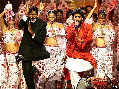 آميتا باچن و پسرش آبيهشک در هنگام اجرای رقص