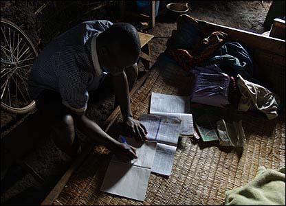 امرنس: "اين برادر کوچکتر من است. از تختش به عنوان ميز استفاده می کند. پدر و مادر ما در جنگ رواندا کشته شدند. اگر هر دوی مان درس بخوانيم ديگر چيزی برای خوردن نداريم."