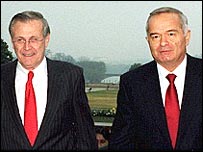 وقايع ۱۱ سپتامبر در ايالات متحده امريکا به کريم اف ياری کرد که با در اختيار گذاشتن کشورش به عنوان پايگاهی برای نظاميان آمريکايی برای دسترسی به افغانستان روابط نزديکی با واشنگتن برقرار کند. اين امر موجب افزايش کمکهای مالی امريکا به ازبکستان شده است. ازاينرو ناظران حقوق بشر با ابراز نگرانی شديد از اوضاع هشدار دادند که اين حمايتها تمرکز بين المللی بر روی بسياری از موارد گزارش شده از شکنجه و حقوق بشر در ازبکستان را دشوار نموده است. کريم اف در سال ۱۹۳۸ در شهر سمرقند متولد شد. او تحصيلاتش در رشته اقتصاد است و مناصب مهمی در ازبکستان شوروی سابق بعهده داشته است، از جمله وزارت دارايی و رياست کميته مرکزی حزب کمونيست ازبکستان. نخست وزير: شوکت ميرزايف رسانه ها با وجود اينکه قانون اساسی سانسور خبری را ممنوع و آزادی مطبوعات را تضمين کرده است، حکومت رسانه ها را تحت کنترل شديد قرار می دهد. براساس گزارشی که در سال ۲۰۰۳ از سوی گزارشگران بدون مرز، که يک سازمان بين المللی دفاع از آزادی مطبوعات است، منتشر شد رسانه ها اجاره ذکر مطالبی در رابطه با مسائلی از قبيل اپوزيسيون سياسی، رواج فساد يا سلب آزاديهای مدنی نيستند. در اين گزارش اضافه می شود که حکومت خبرنگارانی را که اين قوانين را زيرپا می گذارند مورد اذيت و آزار قرار می دهد و يا به زندان می اندازد. با وجود اينکه در سال ۲۰۰۲ سانسور مطبوعات قبل از چاپ آنها لغو شد خودسانسوری امری متداول است. کميته حمايت و دفاع از آزادی رسانه ها، واقع در امريکا، گزارش کرده است که شماری از مطبوعات ماموران سانسور سابق را استخدام کرده اند تا از خطر چاپ مقالات ناخوشايند بکاهند. اکثر چاپخانه ها و مراکز پخش تحت تصدی دولت قرار دارند. علاوه بر شبکه های دولتی، ازبکستان دارای ۳۵ ايستگاه تلويزيونی و چندين کانال راديويی خصوصی - از جمله ۱۵ کانال در تاشکند - است. با وجود اينکه دسترسی به برخی کانالهای خارجی از طريق ماهواره ميسر است، معذالک بسياری از مردم از توان مالی برای دسترسی به اين کانالها بی بهره اند. بر اساس آمار رسمی کشور در ژانويه 2005 حدود 675 هزار نفر در سال ۲۰۰۲ کاربر اينترنت بودند. مطبوعات خلق سوزی - روزنامه دولتی تلويزيون سازمان راديو تلويزيون ازبکستان - شبکه دولتی راديو سازمان راديو تلويزيون ازبکستان - شبکه دولتی خبرگزاری ها خبرگزاری دولتی ازبکستان |
