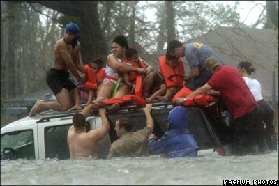 زمانی که تندباد کاترينا که از خليج مکزيک به سوی جنوب ايالات متحده آمريکا با سرعت پيش می آمد، دستور داده شد که ساکنان شهر نيو اورلئان در ايالت لوئيزيانا، سريعا اين شهر را ترک کنند هر چند بسياری در مرز ميان رفتن و ماندن، مستاصل بودند. بيش از 900 نفر بر اثر اين تندباد جان خود ر از دست داده و هزاران نفر بی خانمان شدند. خسارات مالی ناشی از تندباد بيش از صد ميليارد دلار برآورد شد.