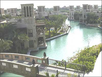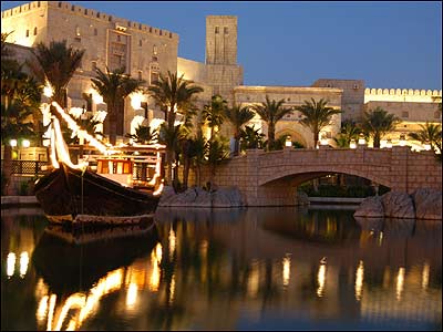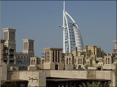 منطقه جميرا. معماری سنتی اين شهرک گردشگران زيادی را به خود جذب کرده است.