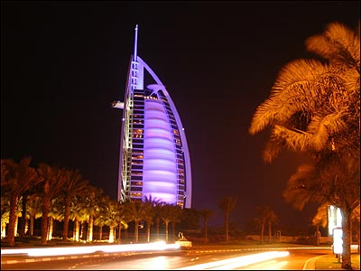 برج العرب تنها هتل هفت ستاره جهان در ميان ساختمانهايی با معماری سنتی مناطق حاشيه خليج فارس. اين برج در منطقه ساحلی جميرا و بر روی سکويی که دهها متر در آب پيش رفته است ساخته شده است.