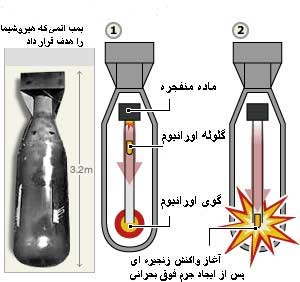 کلاهک هسته ای شامل گوی پلوتونيومی است که اطراف آنرا پوسته ای موسوم به منعکس کننده نوترونی فرا گرفته است. اين پوسته که معمولا از ترکيب بريليوم و پلونيوم ساخته ميشود، نوترونهای آزادی را که از فرايند شکافت هسته ای به بيرون ميگريزند، به داخل اين فرايند بازمی تاباند. استفاده از منعکس کننده نوترونی عملا جرم بحرانی را کاهش ميدهد و باعث ميشود که برای ايجاد واکنش زنجيره ای مداوم به پلوتونيوم کمتری نياز باشد. برای کشور يا گروه تروريستی که بخواهد بمب اتمی بسازد، توليد پلوتونيوم با کمک راکتورهای هسته ای غير نظامی از تهيه اورانيوم غنی شده آسانتر خواهد بود. کارشناسان معتقدند که دانش و فناوری لازم برای طراحی و ساخت يک بمب پلوتونيومی ابتدائی، از دانش و فنآوری که حمله کنندگان با گاز اعصاب به شبکه متروی توکيو در سال ۱۹۹۵ در اختيار داشتند پيشرفته تر نيست. چنين بمب پلوتونيومی ميتواند با قدرتی معادل ۱۰۰ تن تی ان تی منفجر شود، يعنی ۲۰ مرتبه قويتر از قدرتمندترين بمبگزاری تروريستی که تا کنون در جهان رخ داده است. بمب اورانيومی: هدف طراحان بمبهای اتمی ايجاد يک جرم فوق بحرانی ( از اورانيوم يا پلوتونيوم) است که بتواند طی يک واکنش زنجيره ای مداوم و کنترل نشده، مقادير متنابهی انرژی حرارتی آزاد کند. يکی از ساده ترين شيوه های ساخت بمب اتمی استفاده از طرحی موسوم به "تفنگی" است که در آن گلوله کوچکی از اورانيوم که از جرم بحرانی کمتر بوده به سمت جرم بزرگتری از اورانيوم شليک ميشود بگونه ای که در اثر برخورد اين دو قطعه، جرم کلی فوق بحرانی شده و باعث آغاز واکنش زنجيره ای و انفجار هسته ای ميشود. کل اين فرايند در کسر کوچکی از ثانيه رخ ميدهد. جهت توليد سوخت مورد نياز بمب اتمی، هگزا فلوئوريد اورانيوم غنی شده را ابتدا به اکسيد اورانيوم و سپس به شمش فلزی اورانيوم تبديل ميکنند. انجام اين کار از طريق فرايندهای شيميائی و مهندسی نسبتا ساده ای امکان پذير است.