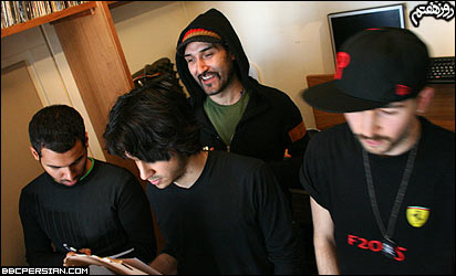 شعر آهنگ ها رو خودتون تک تک می نويسين؟ مهراد: آره. خيلی ها فکر می کنن يک نفر از ما شعرها رو ميگه. اما هر کدوم از ما هز قسمتی رو که قراره بخونه، خودش شعرش رو هم میگه. ايده آهنگ "خليج فارس" مال کی بوده؟ سامان: ايده من بوده. اما دوباره هر کسی شعر قسمت خودش رو گفته. مهراد: ما اصولاً برای آهنگ ها اسم نمی ذاريم و اينها اسم هايی هستن که برای خودمون درست کرديم. سهراب: اين آهنگ ربطی به خليج فارس نداره. فقط چون من توش ميگم "زدبازی يدونست از خزر تا خليج فارس" بهش می گیم "خلیج فارس". البته منظورم اينه که تو کل ايران ما یدونه ( تک ) هستيم!