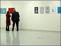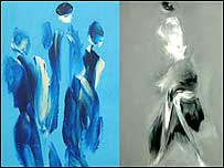 کریستف، اوتیست نقاشی است که قادر به صحبت کردن نیست و تنها از راه نقاشی با جهان ارتباط برقرار می کند؛ این را به سادگی می توان از تابلوهایش حس کرد. آثار به نمایش درآمده همگی فیگور آدمهایی را نشان می دهد که در کنار هم ایستاده یا می رقصند. بر بوم ها شمای بدن زنان و مردانی را می بینیم که به هم تکیه زده اند و در گوش هم نجوا می کنند. آن چیزی که در نقاشی های کریستف بیشتر خودش را نشان می دهد، فریاد نقاش در پس تابلو بود که بیانگر آن است که 'من شما را می بینم اما زبانی برای گفتن با شما ندارم'. چیز دیگری که از نقاشی های او می توان دید حرکت و یک جور فیگورهای رقص شرقی و شاید فیگورهای رقص سماع است. گویی آدمها سر در گریبان هم نجوا می کنند و بدنهایشان را به رقص در می آورند. این حرکت در کل بوم های آویزان شده در گالری به مجموعه ای از فیگورهای رقاصان در آمده بود. از ویژگی های آثار کریستف غیر قابل تقلید بودن آن است. به گفته خانم منصوریان نقاشانی بوده اند که تمایل به کشیدن آثار کریستف را داشتند اما آنها هرگز موفق نشده اند، چرا که نقاشی ها با دست کشیده شده و تقلید از آن بسیار مشکل است. نمونه ای از کارهای کریستف پیلال