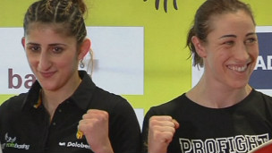 رولا حلبی (چپ) برای قهرمانی سبک وزن فدراسیون جهانی بوکس زنان مقابل لوسیا مورلی از ایتالیا مبارزه خواهد کرد