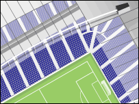 ارتفاع ورزشگاه در بخش شرقی به بلندی يک ساختمان 14 طبقه است.