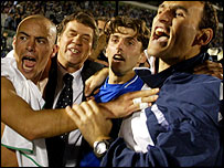 تميستوکليس نيکولايديس بازيکن ۳۱ ساله باشگاه اتلتيکو مادريد که در سال ۱۹۹۹ بازنشستگی خود را برای شرکت در بازيهای اعلام کرده بود بار ديگر در خط حمله يونان جای گرفت. در کنار نيکولايديس، آنگلوس هاريستاس ۲۵ ساله مهاجم ديگر يونان که در باشگاه وردربرمن بازی می کند، در خط حمله يونان حضور دارد. اما شايد مهمترين بازيکن يونان، گورگيو کاراگونيس بازيکن خط ميانی باشگاه اينترميلان باشد. استاليانوس گياناکوپولوس بازيکن بولتون و ترايانوس دلاس بازيکن باشگاه رم نيز از ديگر بازيکنان مهم يونان هستند. |