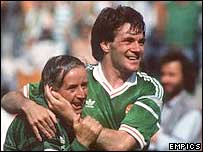جمهوری ايرلند برای اولين بار در سال ۱۹۸۸ به دور نهايی مسابقات راه يافت و بر اساس قرعه مسابقه اول آنها در برابر انگلستان رقم خورد. تيم ايرلند را جکی چارلتون مربی گری می کرد و مطبوعات برای برد اين تيم در برابر انگلستان که بازيکنانی چون گری لينه کر و جان بارنز را به همراه داشت، هيچ بختی متصور نشدند. اما چارلتون و تيم مجربش همان کاری را کردند که هيچ کس انتظارش را نداشت: نتيجه مسابقه را ضربه سر قوس دار ری هوتون رقم زد که از بالای دست های پيتر شيلتون به دروازه انگلستان راه يافت و طرفداران سبز پوش ايرلند را از شدت شادی ديوانه ساخت! انگلستان هيچ گاه از زير بار فشار روانی اين شکست رها نشد و دو بازی بعدی در گروه خود را نيز باخت. ايرلند هم با روسيه مساوی کرد اما در مسابقه حياتی سوم خود در برابر هلند باخت و نيمه نهايی را از دست داد. شماره پنج: پنالتی پانه کا