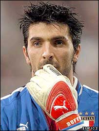 جيان لوئيجی بوفون، دروازه بان اين تيم بيش از هرچيز ديگر يک شوت مهار کن است. اما با وجود مدافعانی چون الساندرو نستا و فابيو کاناوارو، چه اهميتی دارد که در ديگر موارد ضعيف باشيد چون آنها بخوبی منطقه را تخليه می کنند. او فضای زيادی را اشغال می کند اما از آن دروازه بان هائی نيست که برای دفع ضربات ارسال شده مقابل دروازه، خارج شود و از فشار روی مدافعان بکاهد. او در دفاع موقعيتهای تک به تک با مهاجمان حريف بسيار خوب عمل می کند و حتی شايد بتوان گفت هيچکس در حال حاضر در جهان در اين مورد به پای او نمی رسد. نتيجتا با مدافعانی که ايتاليا دارد ترکيب هماهنگ و خوبی را تشکيل می دهند. من بارها در برابر او بازی کرده ام و هيچگاه نديده ام که بد بازی کند. او به ندرت اشتباه می کند که برای يک دروازه بان، نکته ای کليدی است. درباره دروازه بانی بخشی از دفاع بودن يک نکته منفی است؛ شما در خلق موقعيتها سهيم نيستيد بلکه در متوقف ساختن آنها شرکت داريد. مسئله اين است که استوار و بدون تزلزل باشيد. برای يک دروازه بان در سطوح بين المللی ديگر مسئله انجام اعمال خارق العاده برای دفع توپ نيست؛ مهم ترين چيز اشتباه نکردن است. |
