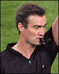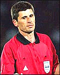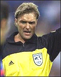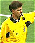 پيرلوئيجی کولينا تعداد کارت: ۲۸ زرد، ۵ قرمز (در ۱۱ مسابقه) سون يوران اريکسون، مربی انگلستان در موردش می گويد:" او اگر بهترين نباشد، يکی از بهترين ها در جهان است." البته بايد هم بگويد! کولينا در آخرين دوره مسابقات عمده ای که شرکت داشت، داوری دو برد عمده اخير انگلستان در برابر آرژانتين و آلمان را برعهده داشت.