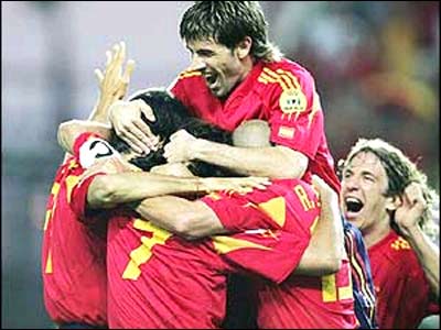خوشحالی بازيکنان اسپانيا پس از به ثمر رساندن گل مقابل روسيه