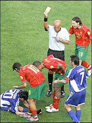 کولينا نخستين کارت زرد بازی ها را به کوستينا از تيم پرتغال داد