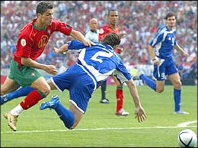 کريستيانو رونالدو که به خطا مانع از پيشروی يورکاس سيتاريديس به سمت دروازه پرتغال شد، باعث اعلام پنالتی به سود يونان شد. گل دوم يونان از طريق همين ضربه پنالتی وارد دروازه پرتغال شد