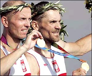 ابراز خوشحالی توماس کوچارسکی و رابرت سيچ لهستانی پس از کسب مدال طلا در قايق رانی دو نقره