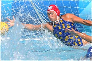 گالينا ريتووا، دروازه بان تيم واترپولو قزاقستان در مسابقه اين تيم مقابل کانادا