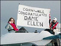 الن مک آرتور پس از شکستن رکورد پيمودن دور دنيا با يک فروند قايق بادبانی، آن هم يکه و تنها، در ميان استقبال هموطنانش به بريتانيا بازگشت و لقب سلطنتی "بانو" ( DAME) را دريافت کرد. خانم مک آرتور ساعت ده و نيم دوشنبه شب (به وقت گرينويچ) از خط پايان گذشت وسفر دريايی ۲۷ هزار مايلی خود را در ۷۱ روز و ۱۴ ساعت و ۱۸ دقيقه و ۳۳ ثانيه تکميل کرد. بدين ترتيب، وی توانست رکورد پيشين را که در فوريه ۲۰۰۴ توسط يک فرانسوی به نام فرانسيس ژويون به ثبت رسيده بود، حدوداَ ۳۳ ساعت کاهش دهد. ملکه و نخست وزير بريتانيا از جمله نخستين شخصيتهايی بودند که برای اين دريانورد ۲۸ ساله پيام تبريک فرستادند. ملکه اليزابت ضمن ابراز "گرمترين تبريکها" لقب بانو الن مک آرتور را به وی اعطا کرد. اين ماجراجو پس از ثبت اين رکورد گفت: "من بسيار بی رمقم، ولی از اين که اينجا هستم، مسرورم. سراسر اين سفر بسيار توان فرسا بود و افکار زيادی در سرم می گذرد. اما بسيار عالی است که سرانجام ذهنم می تواند آرام بگيرد و در ميان عزيزانم استراحت کنم." بازگشت به خانه