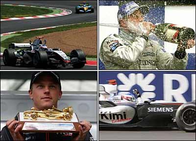 کيمی رايکونن فنلاندی از تيم مکلارن بنز تنها رقيب سرسخت آلونسو که با اختلاف بسيار کمی به خاطر مشکلات فنی ملغوب او شد