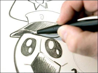 یورگان تامیکک در حال اتود کارتونی که قرار است از آن در مسابقات جام جهانی فوتبال آلمان استفاده شود