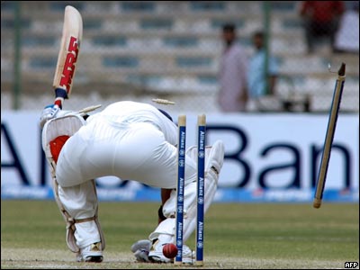 کريکت باز هندی ساچين تاندلکار در مسابقه بين هند و پاکستان در استاديوم محلی کراچی