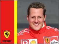 با هفت بار قهرمانی مسابقات فرمول يک، اين نابغه آلمانی سال گذشته به علت ناکامی های تيمش کمتر سر زبان ها بود. او با ۳۷ سال سن همچنان بهترين راننده جهان حساب می شود و در تمام دوران رانندگی خود در اين مسابقات ۸۴ بار به مقام اولی رسيده است که شکستن اين رکورد غير قابل تصور است. در بسياری مواقع او از بدترين اتومبيل بهترين مقام را به دست آورده است که از جمله آنها شروع همکاری او با تيم فراری در سال ۹۶ بود. آنها هيچ اميدی برای کسب امتياز با اتومبيل آن زمان را نداشتند، اما او توانست سه مقام اولی از آن خود و تيمش کند. مايکل در حال حاضر از هيچ گونه ضعف و ناتوانی برخوردار نيست و حاضر به بازنشستگی در اين مسابقات هم نيست و مشتاقانه به رانندگی در تيم فراری ادامه می دهد. او به اين کار عشق می ورزد و آن چنان تشنه رسيدن به مقام اولی است که انگار اولين بار است اين مسابقات را می برد نه برای هشتادوپنجمين بار. تاريخچه شرکت در مسابقات اتومبيلرانی: ۱۹۸۴- کارتينگ جونيور، آلمان، قهرمان سال ۱۹۸۵- کارتينگ جونيور، آلمان، قهرمان سال ۱۹۸۶- کارتينگ، آلمان در مقام سوم/ کارتينگ، اروپا در مقام سوم ۱۹۸۷- کارتينگ، آلمان قهرمان سال/ کارتينگ، اروپا قهرمان سال ۱۹۸۸- فرمولا کونيگ، قهرمان سال/FF۱۶۰۰، اروپا در مقام دوم/ FF۱۶۰۰، آلمان در مقام ششم ۱۹۸۹- فرمول ۳، آلمان، مقام سوم ۱۹۹۰- پروتوتايپ، مقام پنجم/ فرمول ۳، آلمان، قهرمان سال ۱۹۹۱- پروتوتايپ، مقام نهم/ فرمول يک (جردن و بنتون) با ۴ امتياز در مقام سيزدهم ۱۹۹۲- فرمول يک (تيم بنتون) با ۵۳ امتياز در مقام سوم ۱۹۹۳- فرمول يک (تيم بنتون) با ۵۲ امتياز در مقام چهارم ۱۹۹۴- فرمول يک (تيم بنتون) با ۹۲ امتياز قهرمان سال ۱۹۹۵- فرمول يک (تيم بنتون) با ۱۰۲ امتياز قهرمان سال ۱۹۹۶- فرمول يک (تيم فراری) با ۵۹ امتياز در مقام سوم ۱۹۹۷- فرمول يک (تيم فراری) با ۸۷ امتياز اخراج از دوره مسابقات ۱۹۹۸- فرمول يک (تيم فراری) با ۸۶ امتياز در مقام دوم ۱۹۹۹- فرمول يک (تيم فراری) با ۴۴ امتياز در مقام پنجم ۲۰۰۰- فرمول يک (تيم فراری) با ۱۰۸ امتياز قهرمان سال ۲۰۰۱- فرمول يک (تيم فراری) با ۱۲۳ امتياز قهرمان سال ۲۰۰۲- فرمول يک (تيم فراری) با ۱۴۴ امتياز قهرمان سال ۲۰۰۳- فرمول يک (تيم فراری) با ۹۳ امتياز قهرمان سال ۲۰۰۴- فرمول يک (تيم فراری) با ۱۴۸ امتياز قهرمان سال ۲۰۰۵- فرمول يک (تيم فراری) با ۶۲ امتياز در مقام سوم |