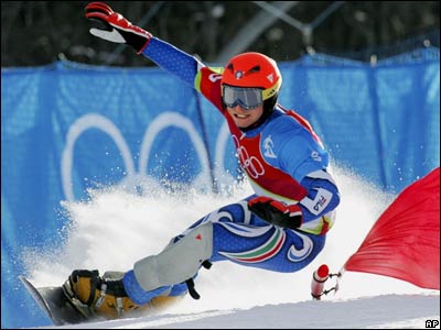 مينارد ارلاچر از ايتاليا در رقابت های اسلالوم اسنوبورد در المپيک زمستانی