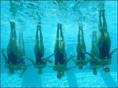 نمايش تيم شنای برزيل در مسابقات حرکتهای نمايشی آبی آمريکای جنوبی، که در مدلين کلمبيا برپاست.