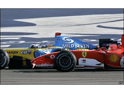 قهرمانان ديروز(شوماخر) و امروز(آلونسو) شانه به شانه در اولين رقابت از مسابقات فرمول يک بحرين که با پيروزی آلونسو به پايان رسيد.