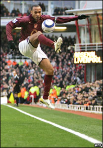 در مسابقات ليگ برتر انگلستان که شب گذشته بين دو تيم آرسنال و ليورپول در لندن برگزار شد، آرسنال1-2 ليورپول را شکست داد. تيری هانری (در تصوير) هر دو گل آرسنال را به ثمر رساند.
