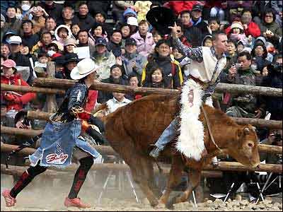 تصويری از يک گاو باز آمريکايی در فستيوال گاوبازی رودئو که در چونگدو سئول برگزار شد.