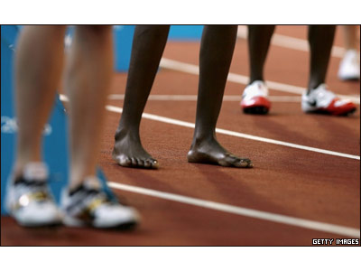 لبوگنگ فاکولا از آفريقای جنوبی، بدون کفش در دو 800 متر استقامت زنان شرکت کرد.